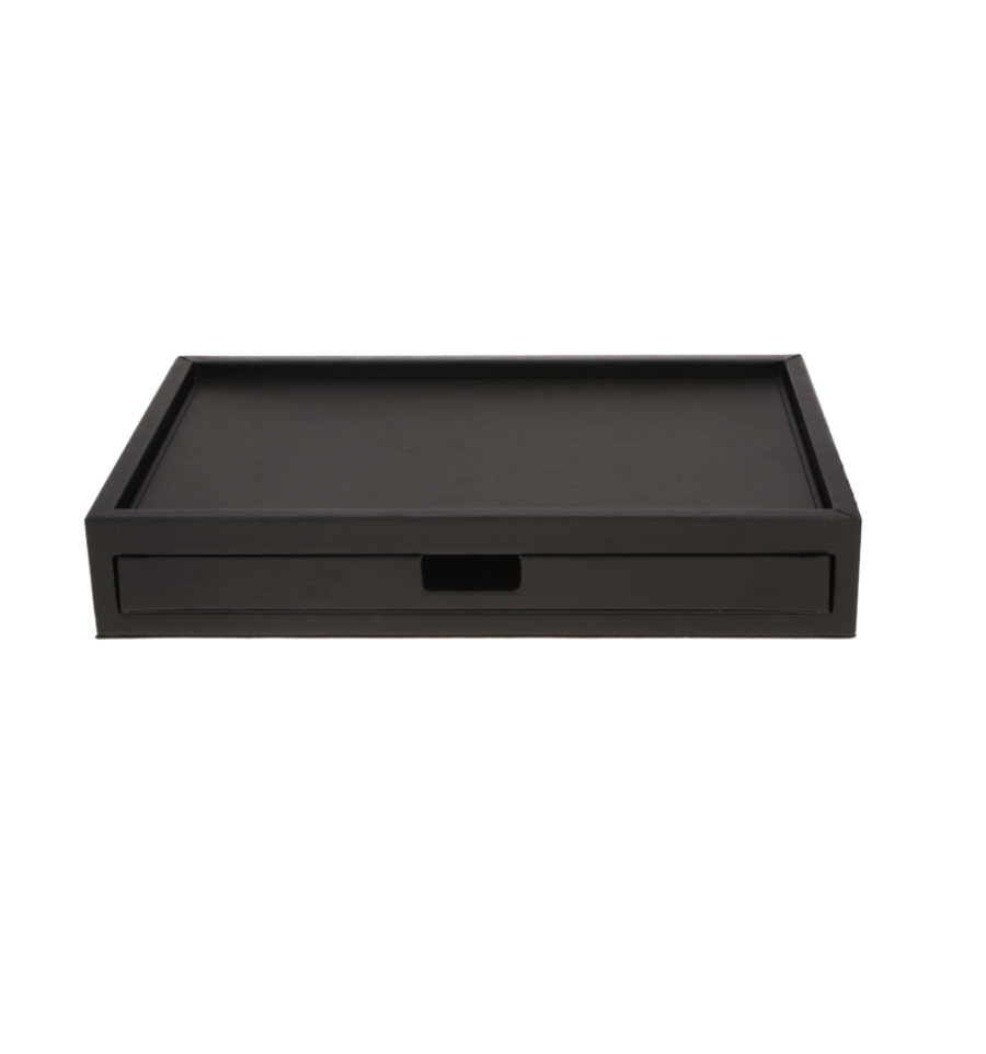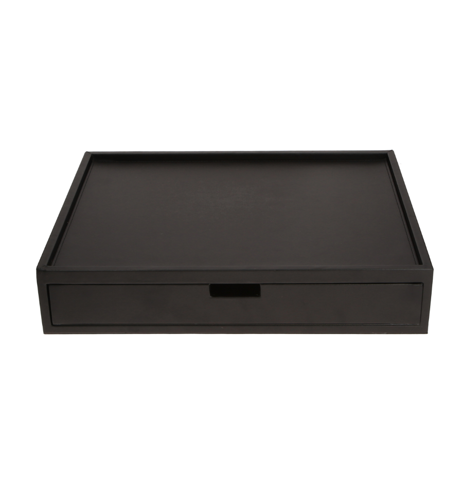 Ce plateau noir en cuir synthèse est résistant à l'eau, donc il est facile à entretenir et nettoyer. Un plateau bien présenté avec un tiroir de rangement propre est perçu comme un surclassement.