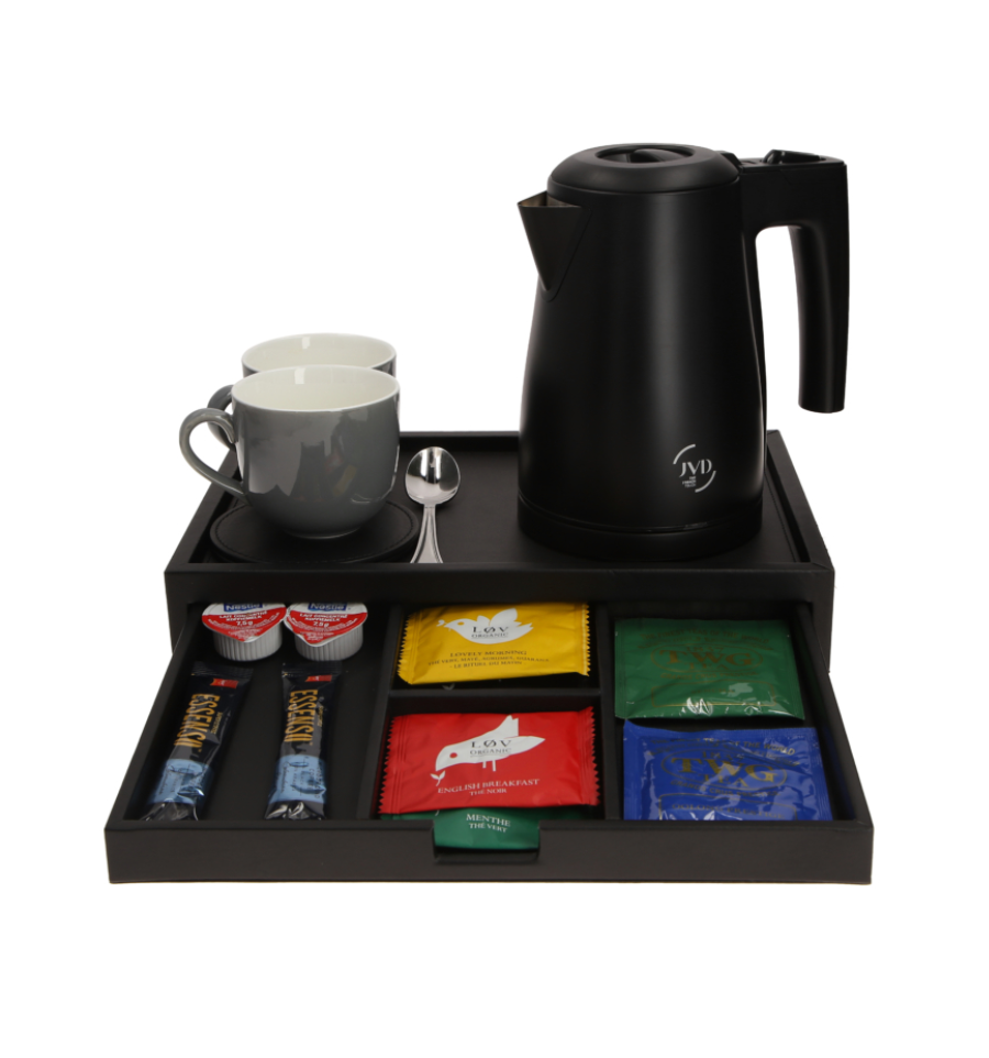 Le plateau de courtoisie est le signe d'un accueil généreux. Il transforme la chambre en un espace chaleureux qui instaure ce fameux sentiment "comme chez soi".
