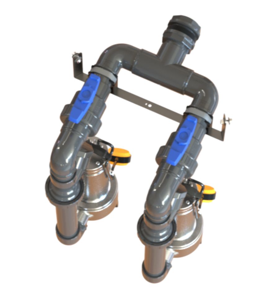 - Double pompe, elle permet de faire fonctionner les deux pompes de façon alternée. Si l'une tombe en panne, l'autre prend le relais. Un coffret de protection, d'alarmes et de gestion est inclus pour l'achat d'une station de relevage double pompe.