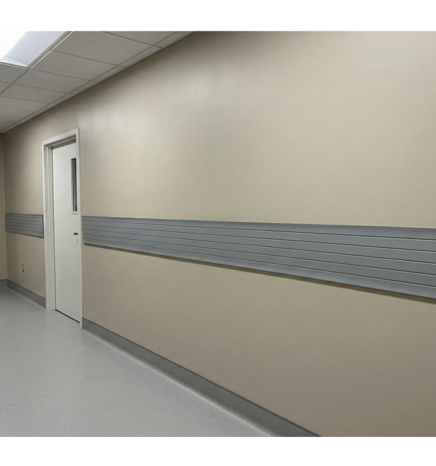Faite pour les zones à fort trafic (couloirs d'hôpitaux, cuisines collectives, écoles), cette lisse de protection murale est conçue pour protéger le mur sur une large surface (180 mm de haut) contre les frottements répétitifs et les rayures (chariots, dossiers de chaises, etc). Son aspect "strié" masque les micro-rayures d'usage, gardant un aspect propre plus longtemps. Elle est adaptée aux environnements collectifs.