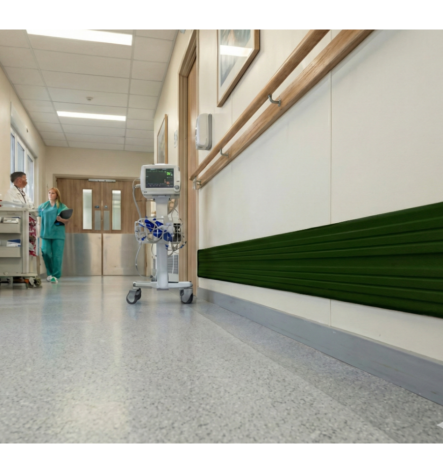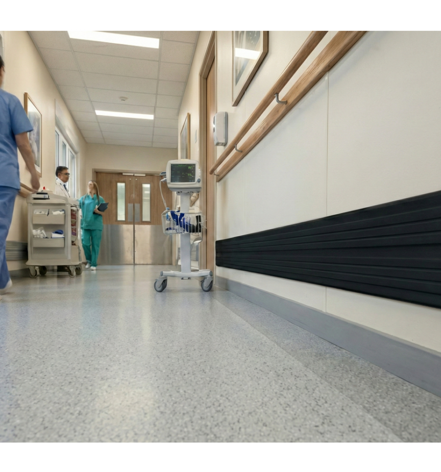 Les lisses de protection murales sont très utilisées dans les hôpitaux, cliniques, blanchisseries et maison de repos. Les murs de ces milieux professionnels exigeants doivent être protégés contre les chocs et impacts à répétition.