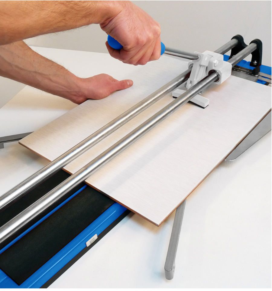 Le confort d'utilisation est au coeur de la conception du design de cette carrelette,. Les modèles proposant la plus grande capacité de coupe sont dotés de roulements à billes pour une glisse d'une fluidité remarquable, complétés par des extensions latérales antidérapantes pour stabiliser vos carreaux les plus larges. Les extensions latérales antidérapantes offrent une base de travail élargie pour stabiliser les pièces de grand format évitant ainsi le basculement du carreau lors de la coupe.