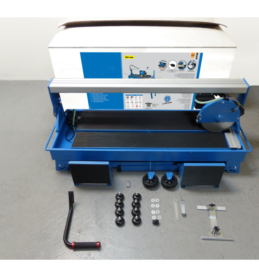 La scie est équipée d'un disque en diamant de 230 mm de diamètre et d'alésage de 25,4 mm, qui assure un résultat performant et précis en cas de besoin de remplacement nous proposon les disques pour scie de table.