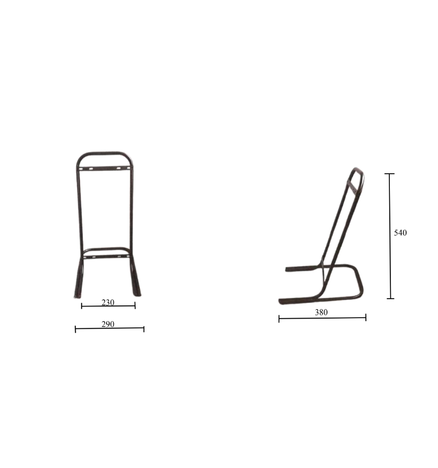 Le petit support métallique (290 x 380 x 540 mm) est idéal pour le coffret de chantier monophasé IP65 grâce à sa compacité, offrant une base stable tout en restant facile à transporter.