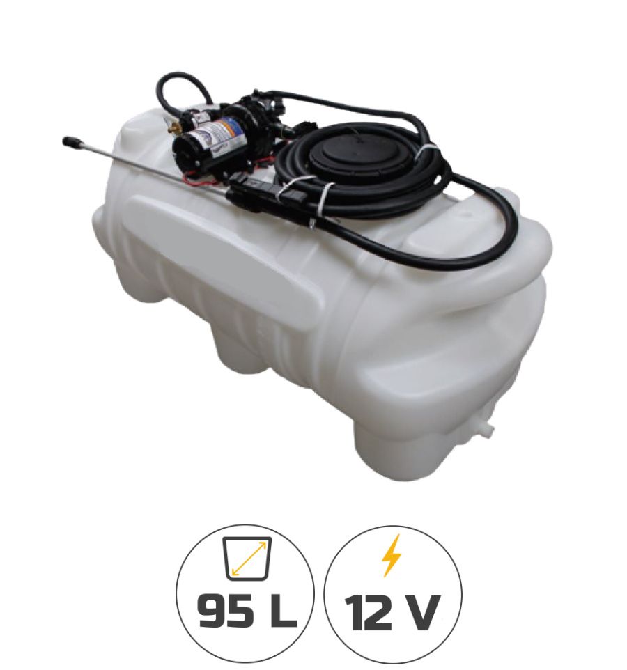 Il possède une cuve en polyéthylène grand volume de 95 L et une pompe 12 V qui peut produire un débit jusqu'à 8 l/mn.