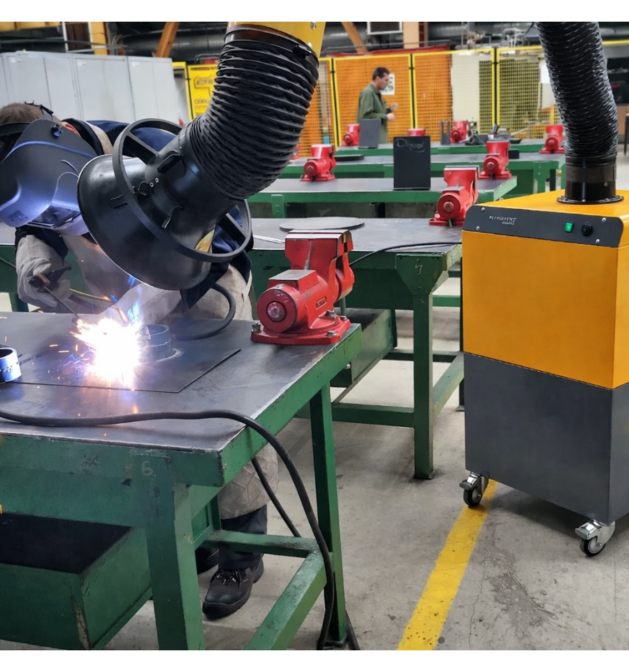Optez pour l'aspirateur de fumée de soudage mobile, un équipement idéal en atelier pour aspirer et filtrer à la source les fumées et poussières provenant d'opérations de soudage et de finition.