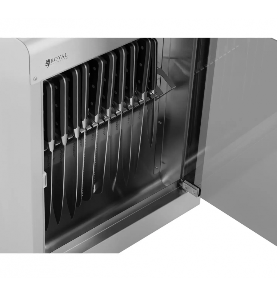 Grâce à son support intérieur, cette armoire de stérilisation peut accueillir jusqu'à 20 couteaux.