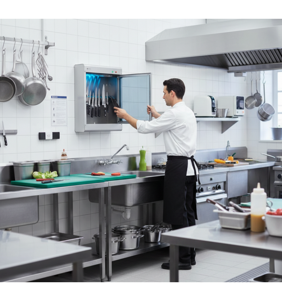 L'armoire de stérilisation 20 couteaux est idéale pour les cuisines profesisonnelles d'un restaurant.
