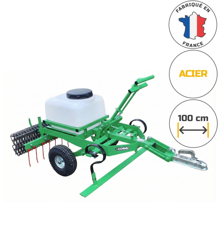 Découvrez notre désherbeur mécanique professionnel avec réservoir et attelage remorque. Il permet de désherber et ratisser les sols durs et souple en s'attelant à un quad, un micro-tracteur ou même un tracteur tondeuse.