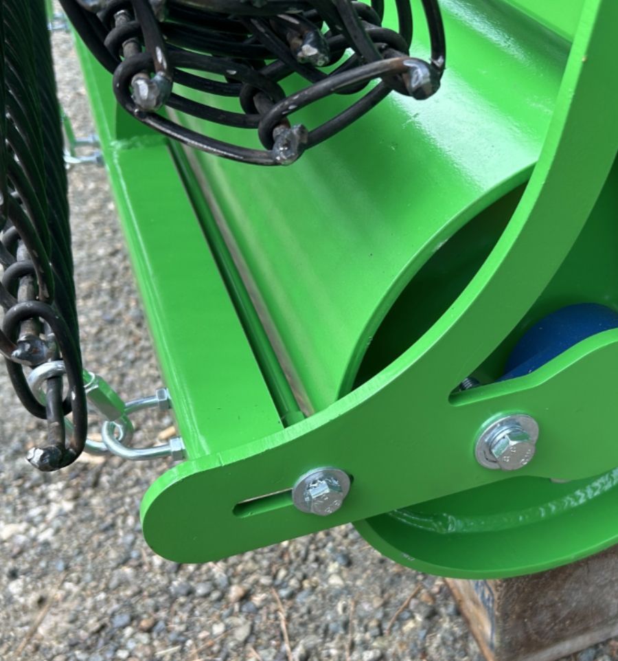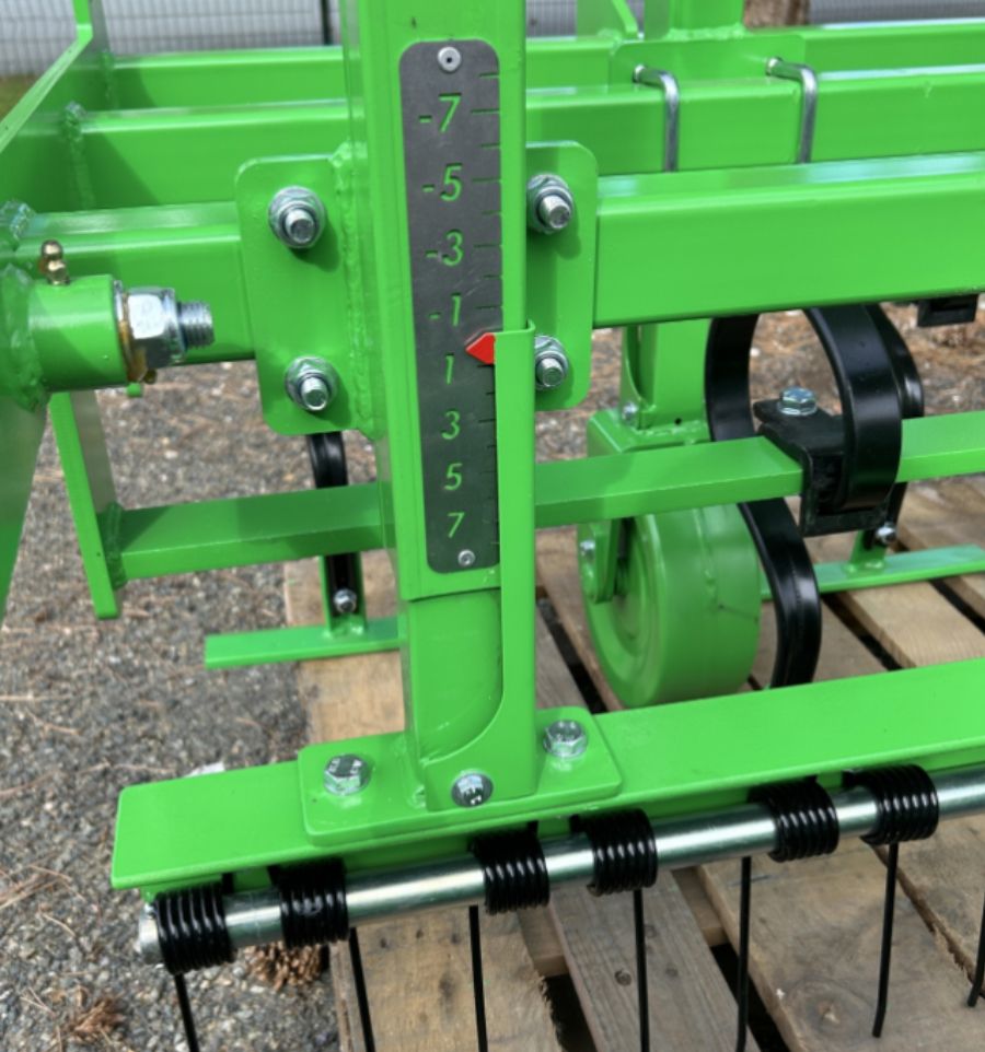 L'avantage de ce modèle est qu'il est réglable au niveau de la profondeur de travail, de la hauteur du ratissage et du rouleau lestable afin d'adapter l'engin à votre besoin.