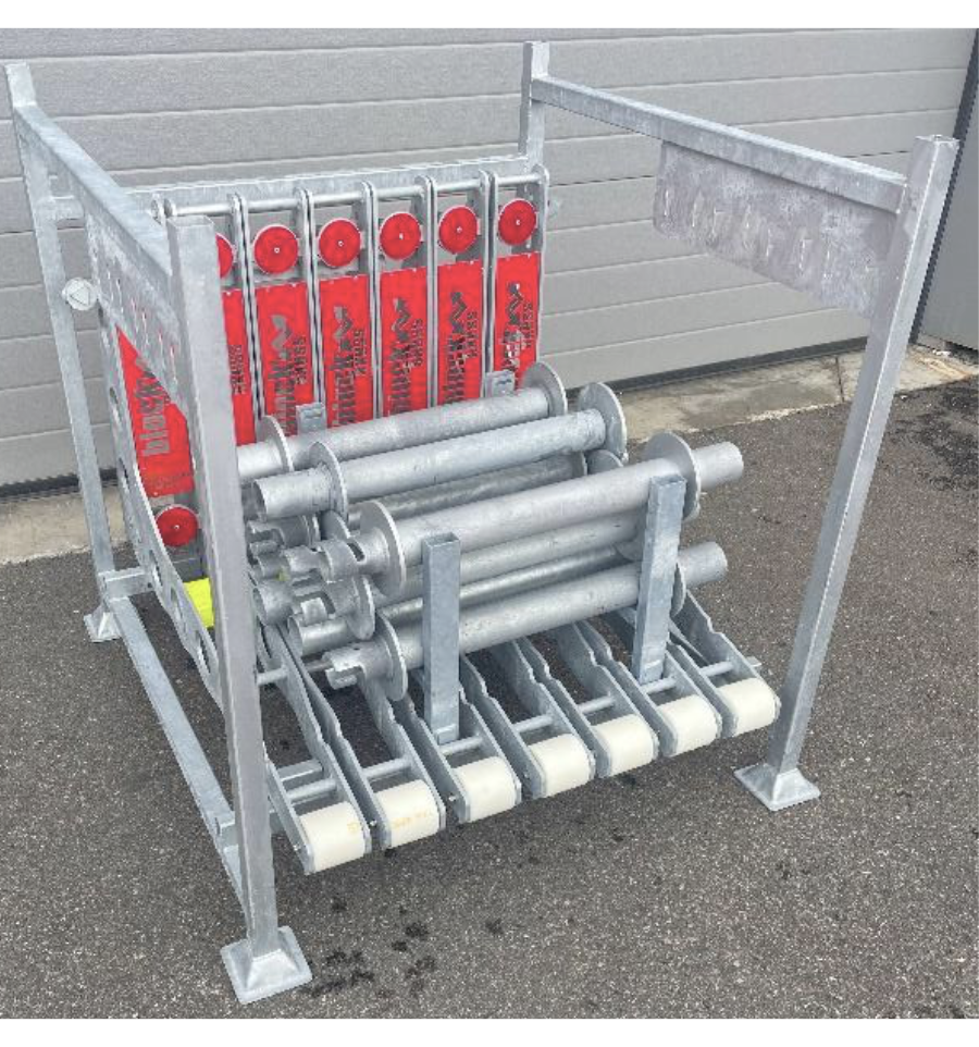 - Rack de stockage (permettant de stocker jusqu'à 8 mètres de barrière)