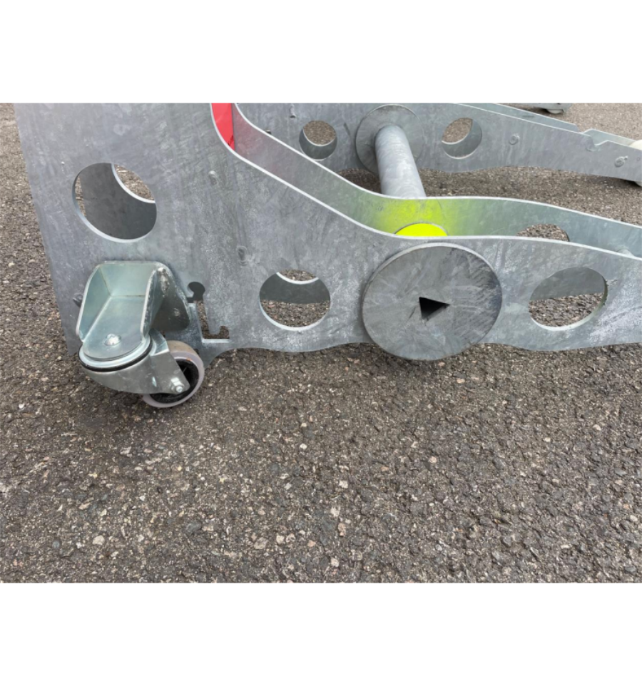 Un kit de roues est fourni pour simplifier le déplacement de cette barrière mobile. Un rack de stockage est en option, pour faciliter le transport et le stockage.