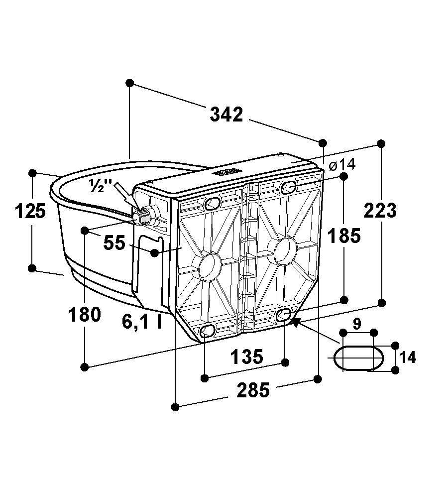 L'installation de l'abreuvoir ovin se fait par un raccordement mâle ½", sur le côté droit ou gauche.