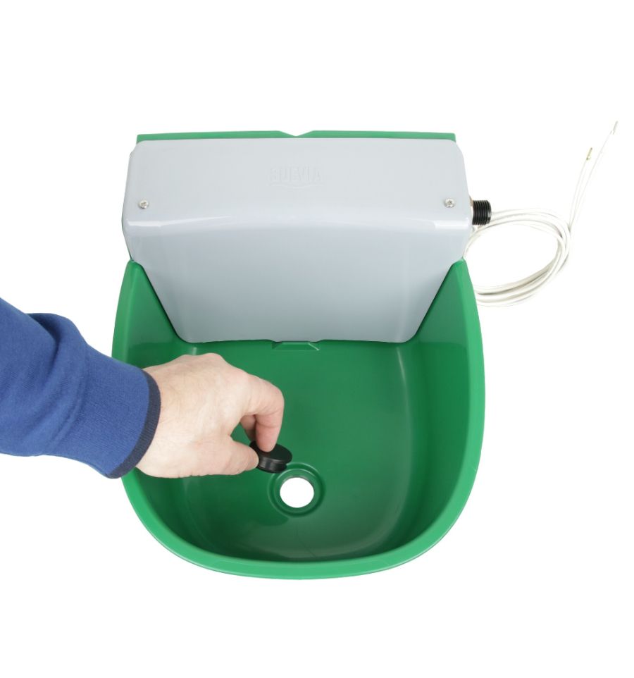 L'abreuvoir chauffant universel est équipé d’un bouchon de vidange Ø30 mm en caoutchouc à pousser, permettant un nettoyage rapide et efficace, sans démontage ni outil.