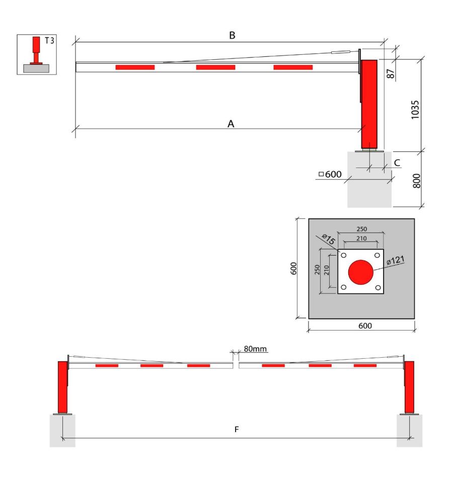 Caractéristiques de la barrière pivotante sans support de lisse 1 à 6 M