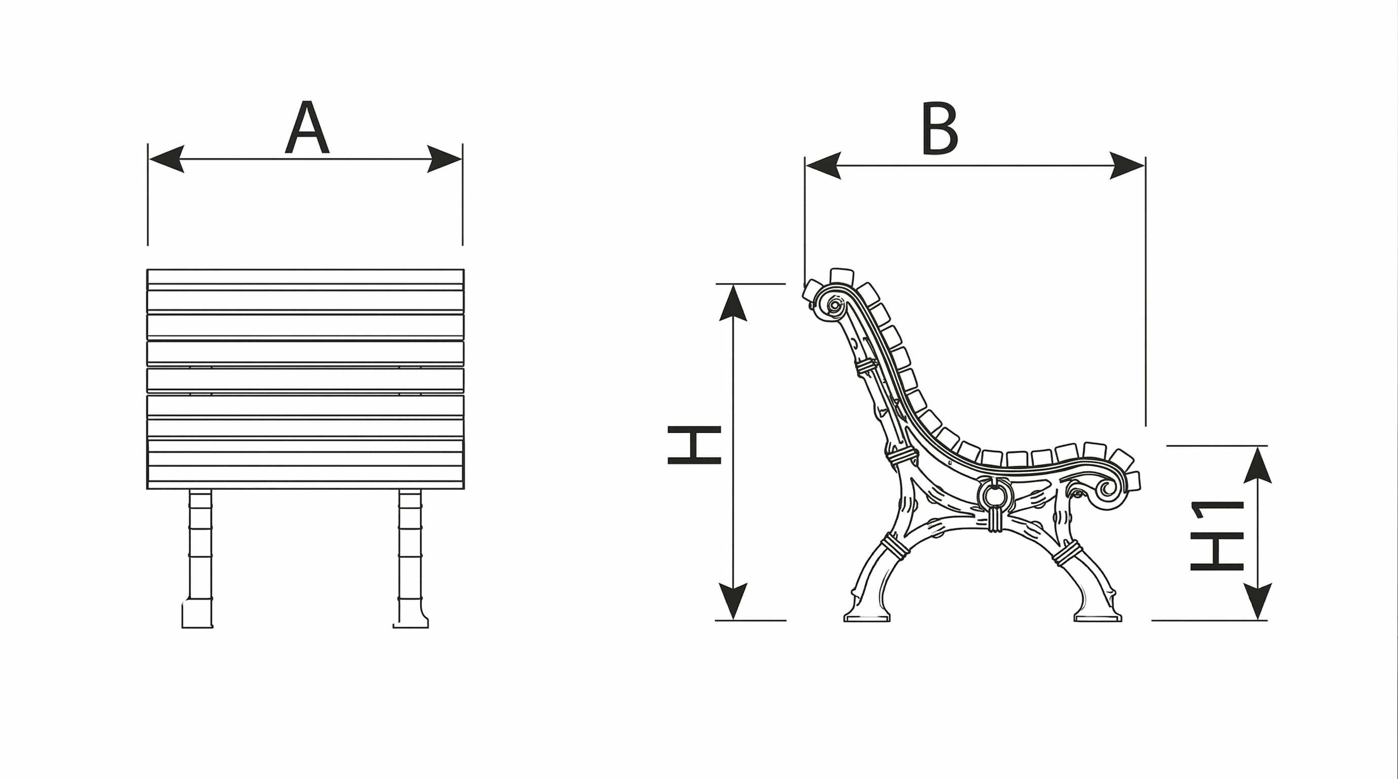 Fabriqué en bois traité Lignus (lattes de l'assise et du dossier) et en fonte traitée Ferrus (structure, pied...).