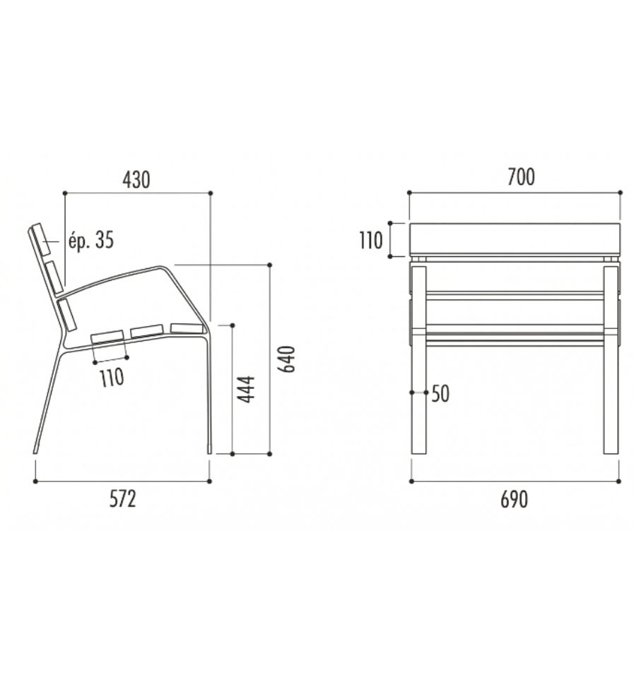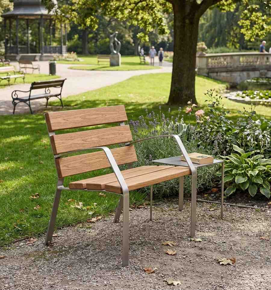 Ce fauteuil urbain privilégie le confort individuel en offrant un espace personnel préservé, contrairement aux bancs publics collectifs classiques.