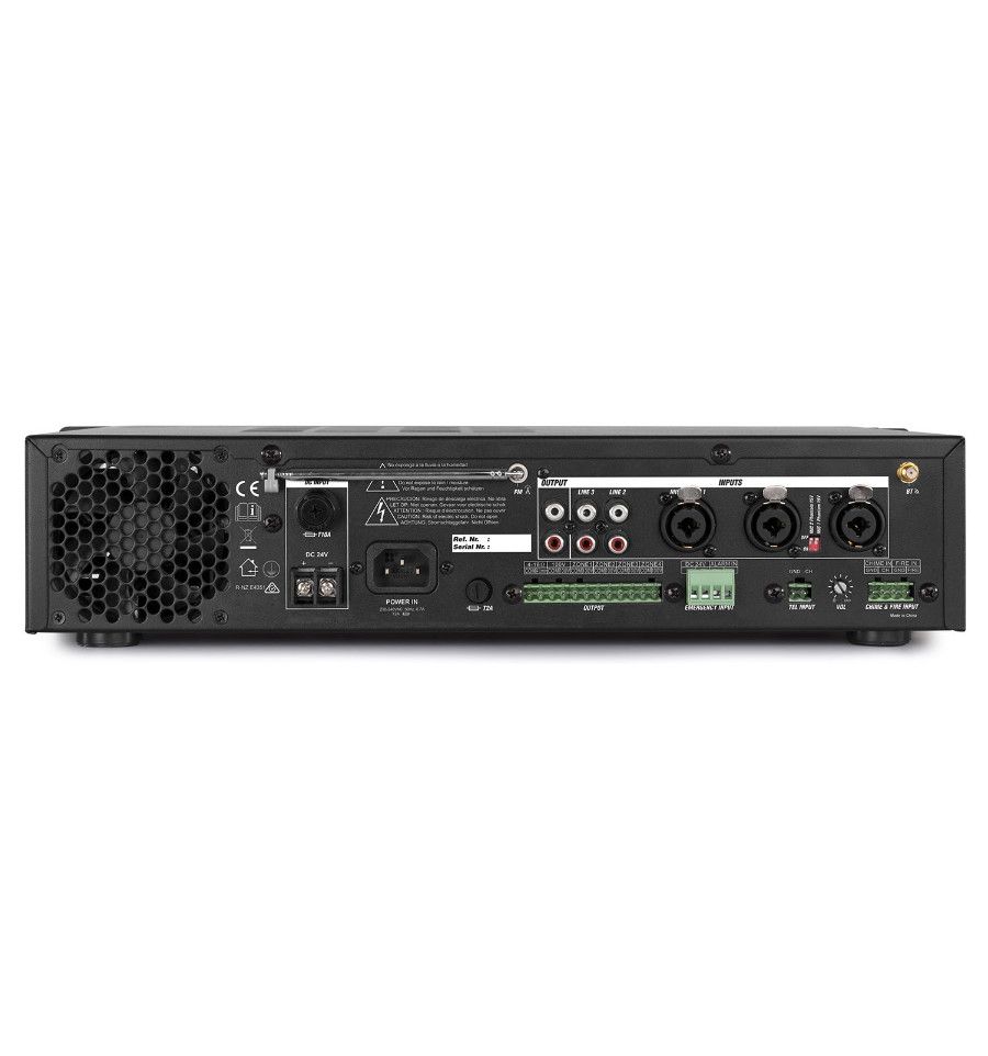 Cet amplificateur est conçu pour des installations de sonorisation professionnelles qui nécessitent une gestion multizone : il délivre une puissance de 120 W RMS et permet de diffuser de la musique ou des annonces dans 4 zones distinctes.
