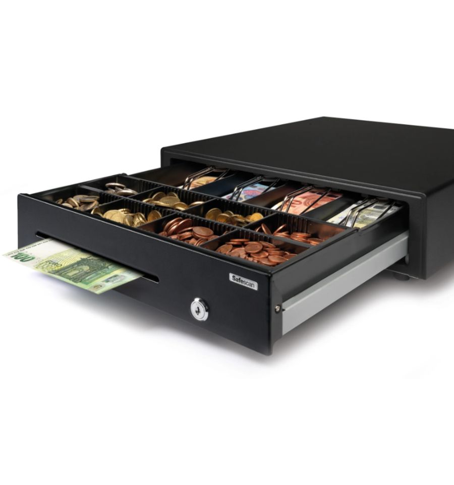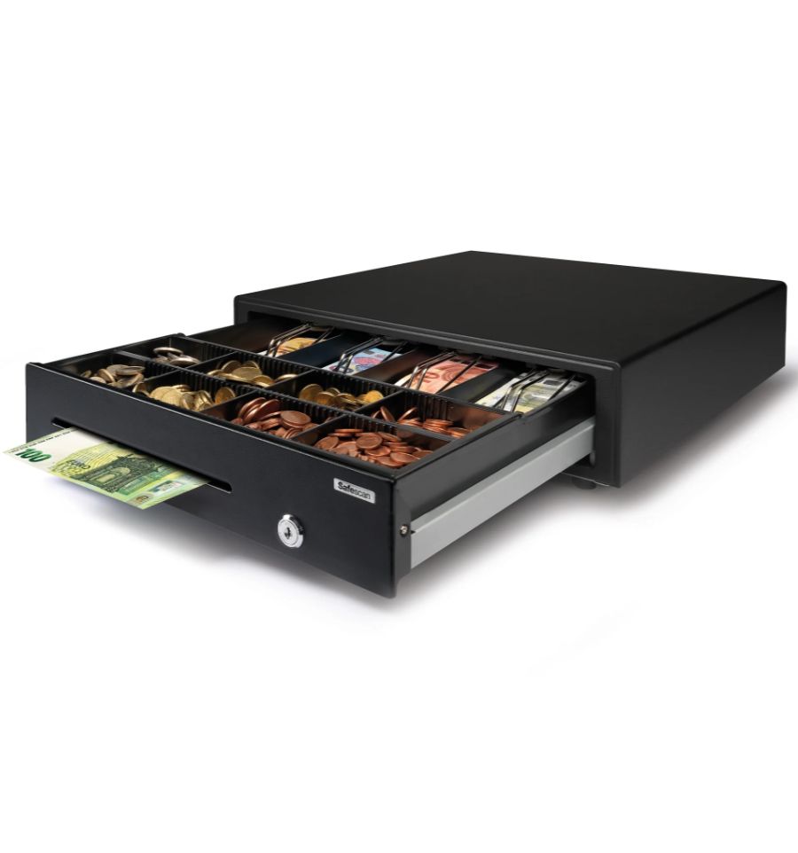 Le tiroir caisse SD 4141 est notre tiroir caisse le plus vendu. Il est conçu pour subir des cadences élevées dans des points de vente modernes. Que vous gériez une boulangerie, un restaurant à fort flux ou une boutique de prêt-à-porter, ce modèle offre l'équilibre parfait entre espace de stockage, vitesse d'exécution et longévité. Optez également pour le tiroir caisse compact Safescan.