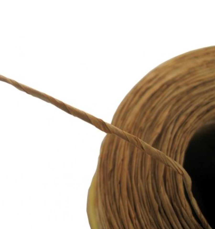 Cette ficelle a la particularité d'être un mélange de papier et d'acier, ce qui la rend biodégradable à 100 %.