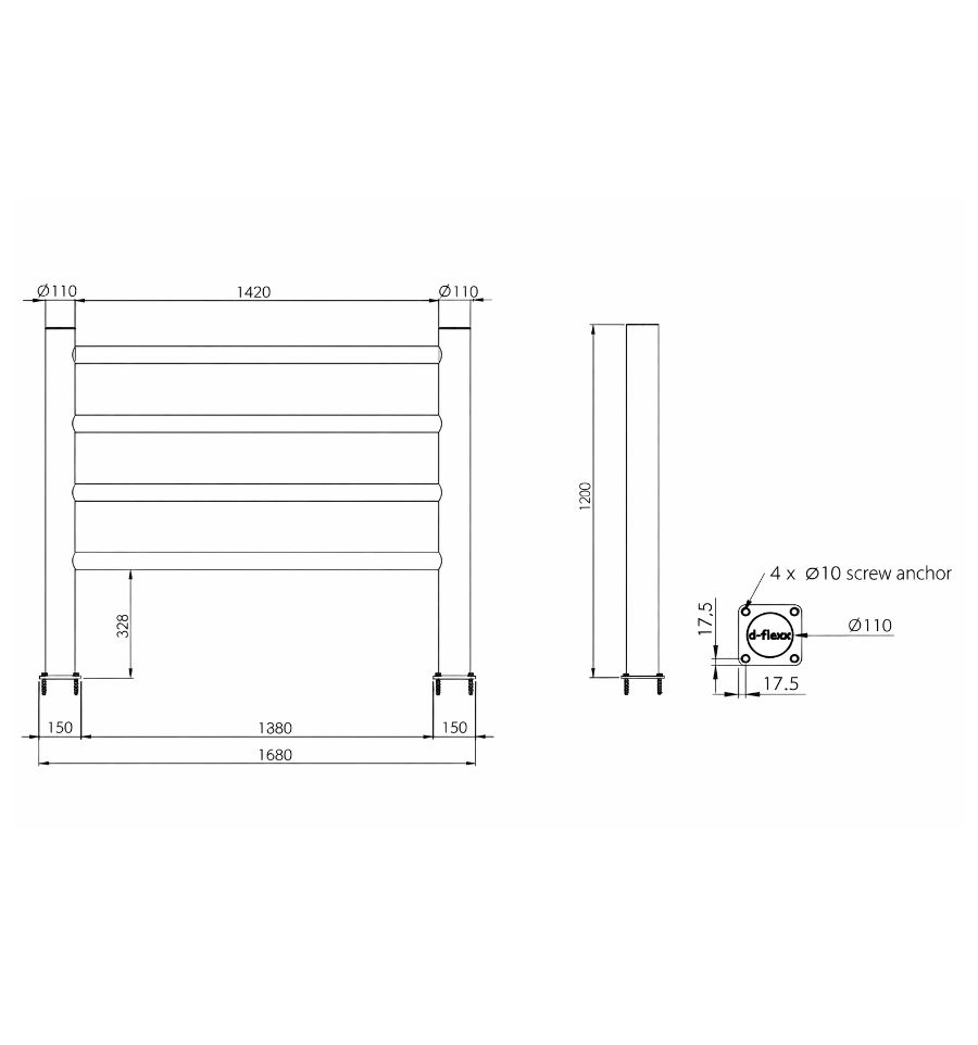 - Set de départ : 2 poteaux d'extrémité et lisses horizontales