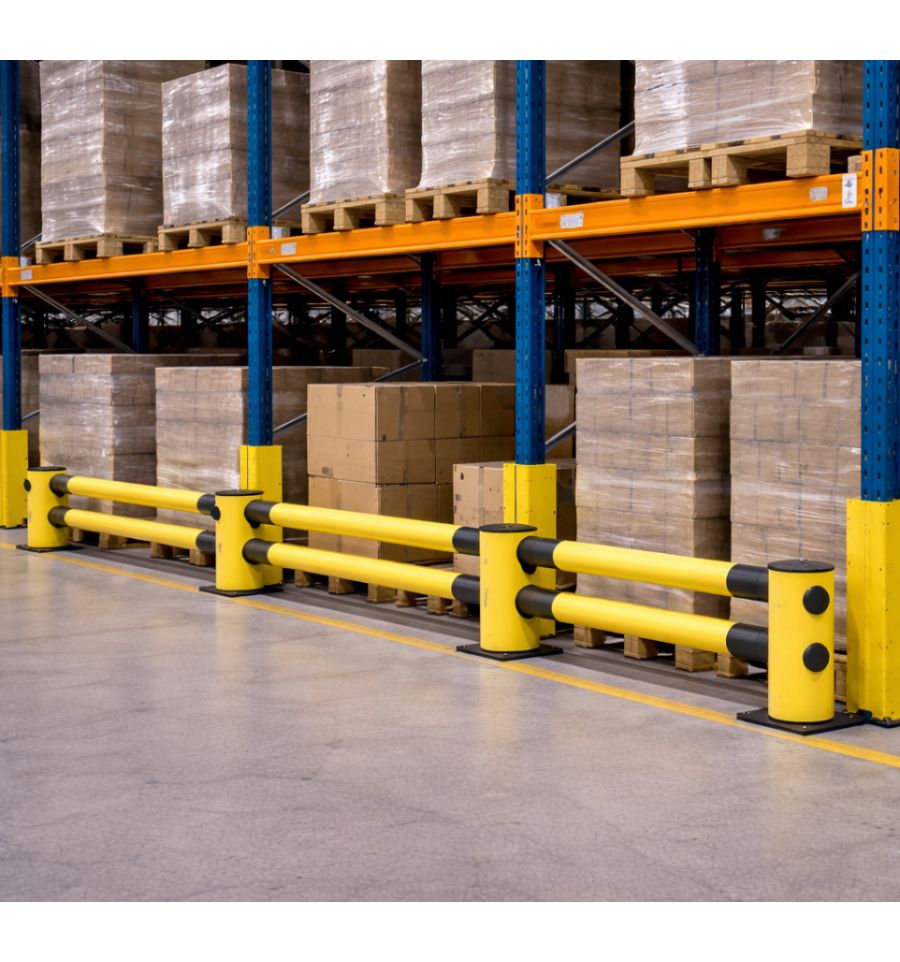 Découvrez la barrière de circulation pour rayonnage en entrepôt offrant une résistance maximale aux collisions.