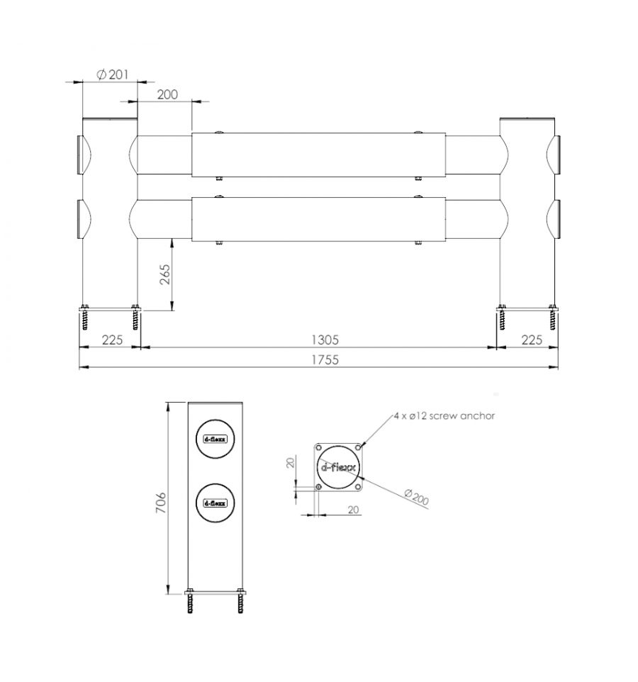 Dimensions (L x H x P) : 1755 x 705 x 225 mm