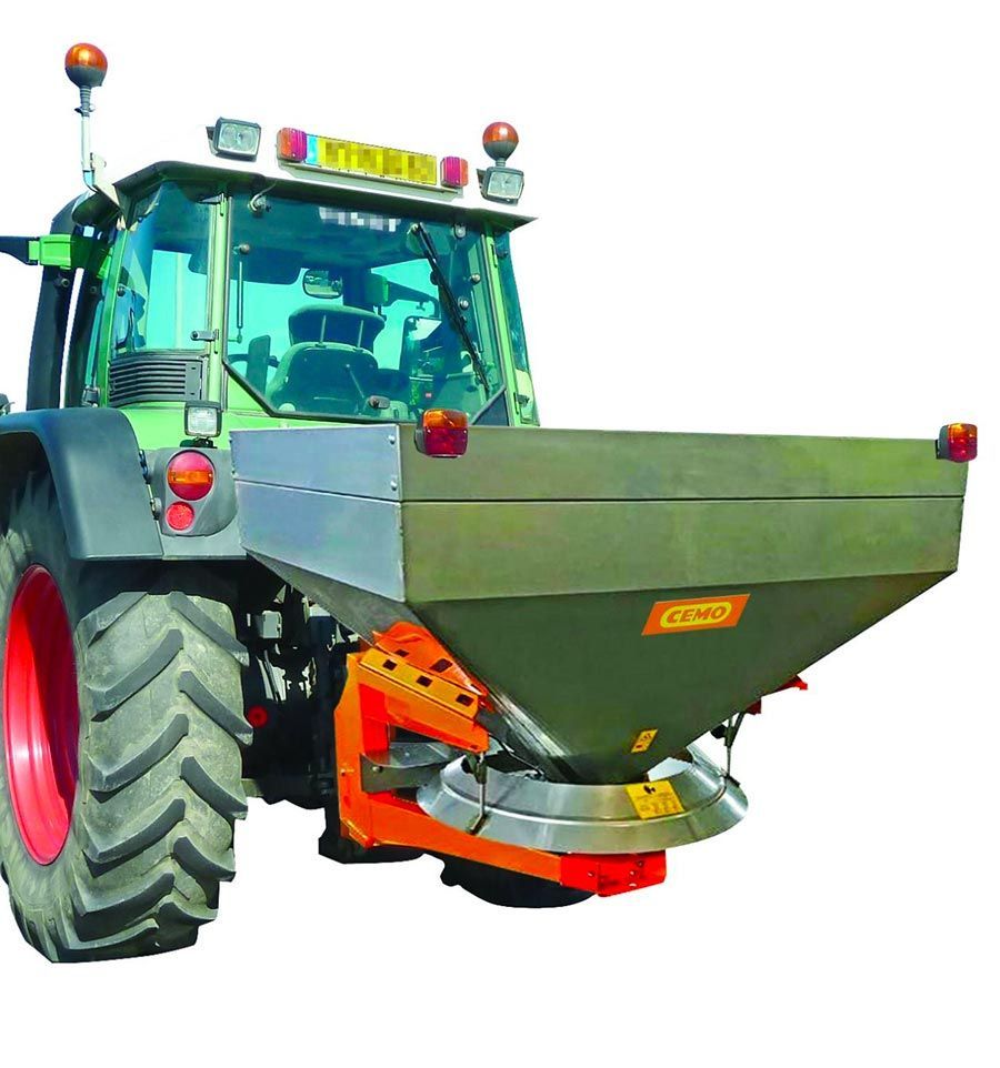 Une fois le montage terminé, remplissez la cuve avec de l'engrais, des semences, du sel... sec. Effectuez un essai à faible vitesse pour contrôler que l’épandage est régulier et que les commandes répondent depuis la cabine.