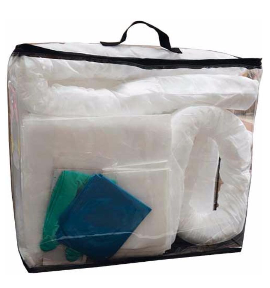Le sac contient, absorbe et élimine les hydrocarbures afin de minimiser les dommages causés à l'écosystème. Idéal pour les entreprises de transports routier ou maritime, les matériaux de ce kit, ont l'avantage de séparer les liquides gras des liquides aqueux. Il permet de respecter les obligations de prévention contre les fuites d'huiles, carburants ou encore solvants.