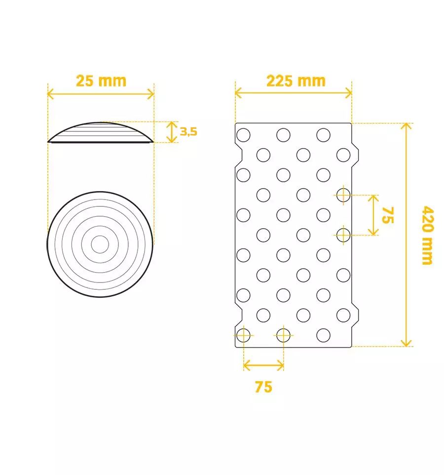 Dimension d'une plaque de clous podotactiles montés sur gabarit :