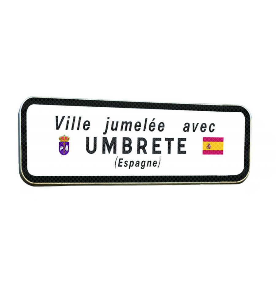 Le panneau de jumelage est un panneau de signalisation placé à l’entrée de la ville afin d’indiquer les différentes villes jumelées. C’est un panneau qui est informatif et non obligatoire.