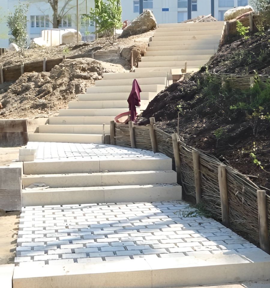 Les marches en bloc béton sont idéales pour l'aménagement d'escaliers extérieurs tels que dans des gradins, amphithéâtres, ou espaces publics urbains et collectivités.
