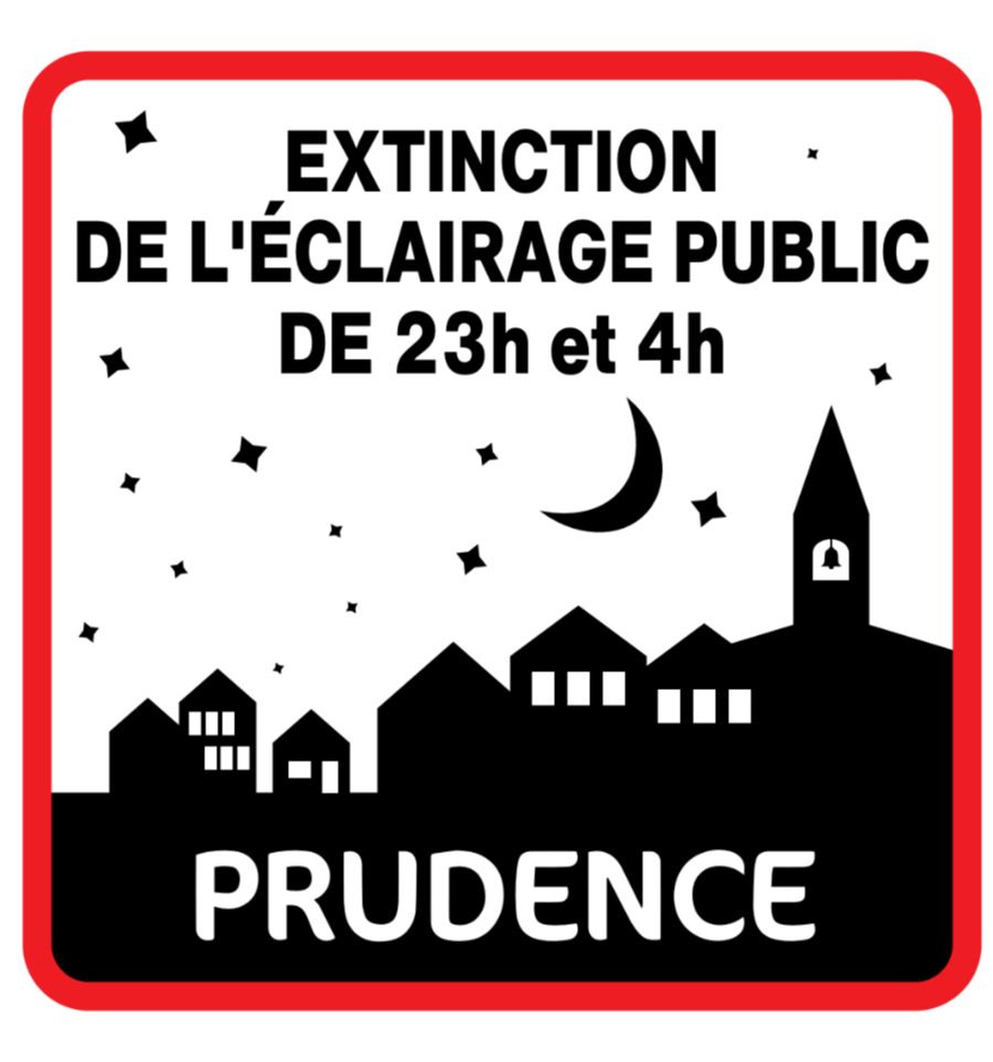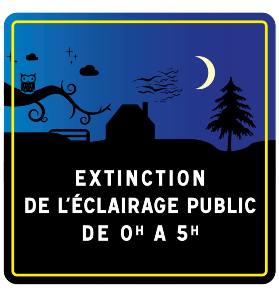 Lorsque vous mettez en place un créneau durant lequel tous les lampadaires et candélabres de la ville sont éteints, la réglementation vous oblige à en informer la population afin d'éviter les surprises et les accidents. Pour cela, vous pouvez installer un panneau extinction de l'éclairage public à l'entrée de la zone (ou de la commune si toute la ville est concernée) pour prévenir les passants et usagers de la route.