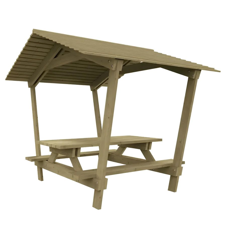 Vous avez une question à propos du produit Table de pique nique avec toit en bois résineux ?