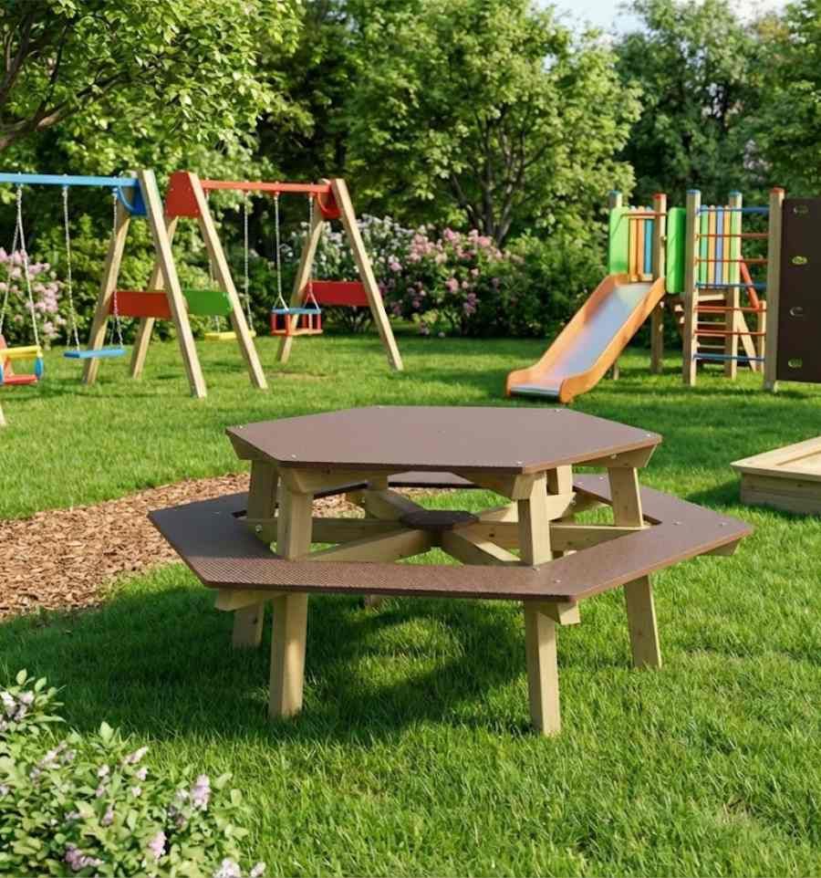 Table de pique nique hexagonale pour enfant en bois