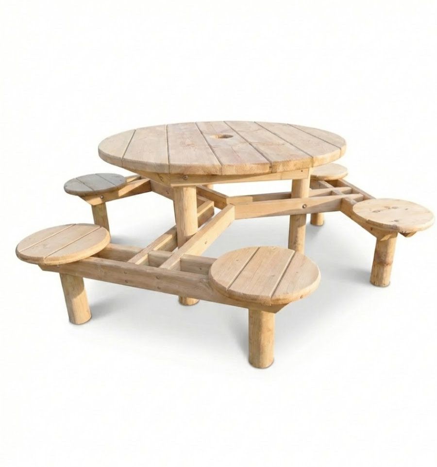 Vous avez une question à propos du produit Table de pique nique ronde en bois brut ?