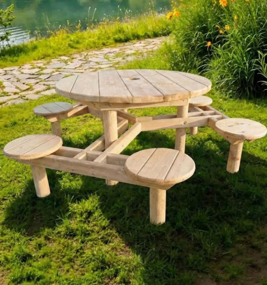 Installer et entretenir la table de pique-nique ronde en bois brut