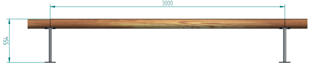 Entraxe poteaux 3 m. Hauteur de la lisse hors sol 0,55 m.