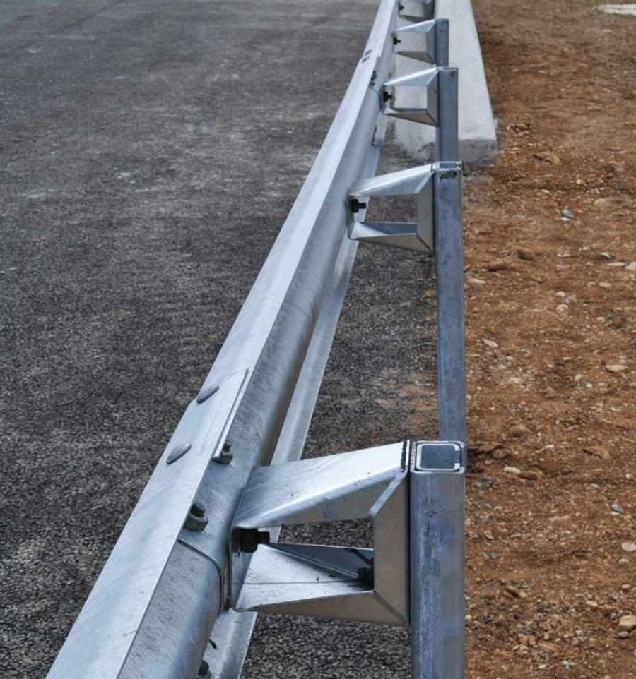 La différence avec la glissière de sécurité métal à utiliser sur site privé réside en l’ajout d’écarteurs entre le support et la lisse faisant de ce système un dispositif de retenue certifié pour le réseau routier.