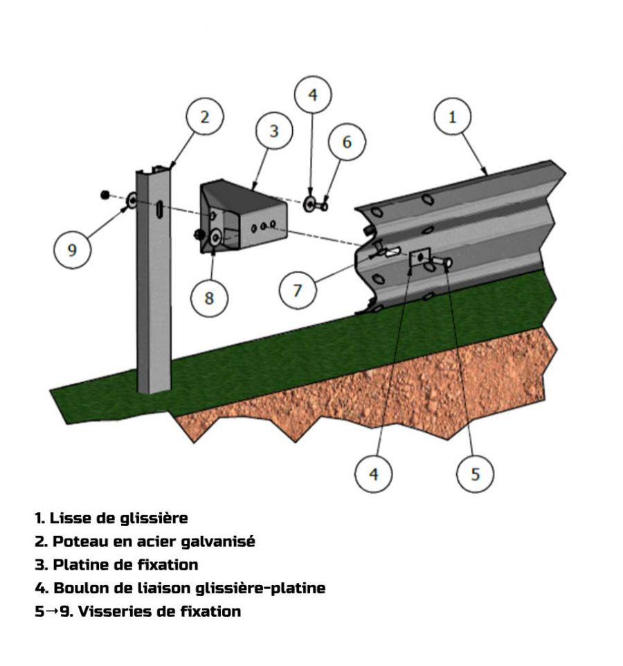 Cependant, dans le cas de travaux neufs, ou si la réparation concerne une longueur supérieure à 200 m, la réglementation impose l’usage de glissières conformes à la norme européenne (EN 1317), disponibles sur demande de devis.