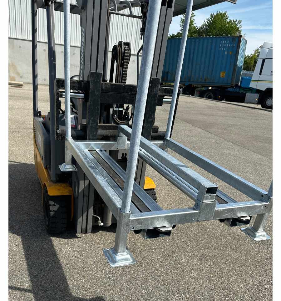 Pour la dépose des barrières, la base de la palette est rehaussée. Si vous souhaitez gagner davantage de place, le gerbage est possible (2 sur 1).