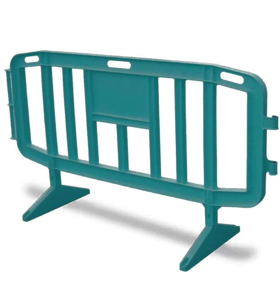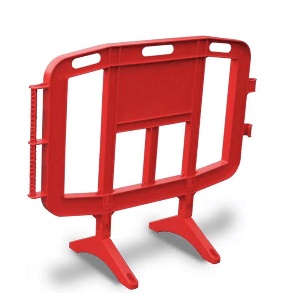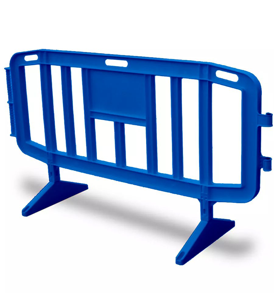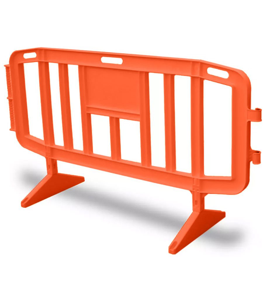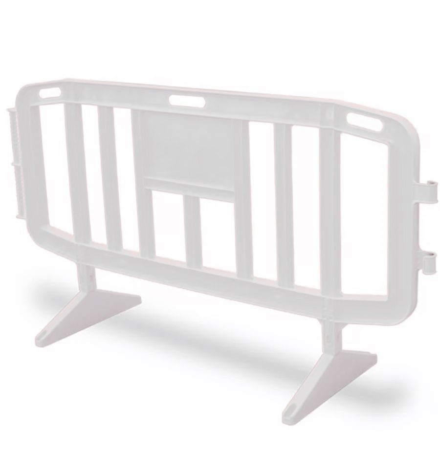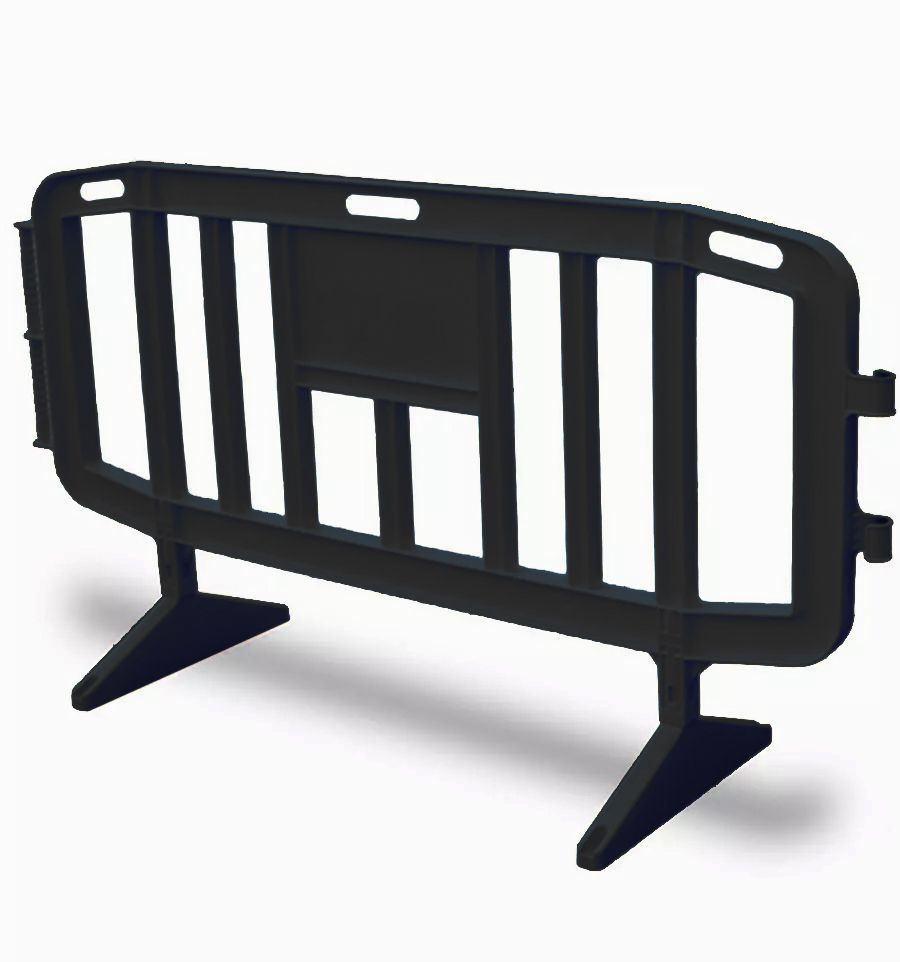 Les barrières de police se fixent entre elles via leurs accroches sur le côté.