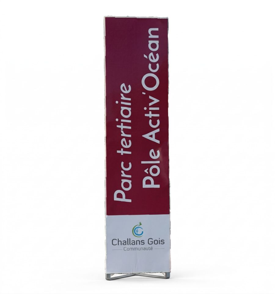 Entièrement personnalisable (simple ou double face), il permet de valoriser votre image avec un visuel sur-mesure : logo, texte, couleurs ou signalétique directionnelle.