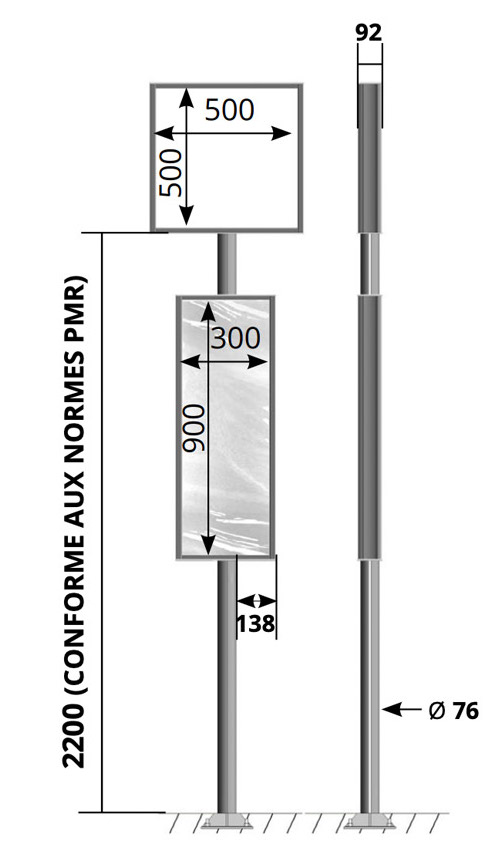 Hauteur totale du poteau : 220 cm (conforme aux normes PMR)