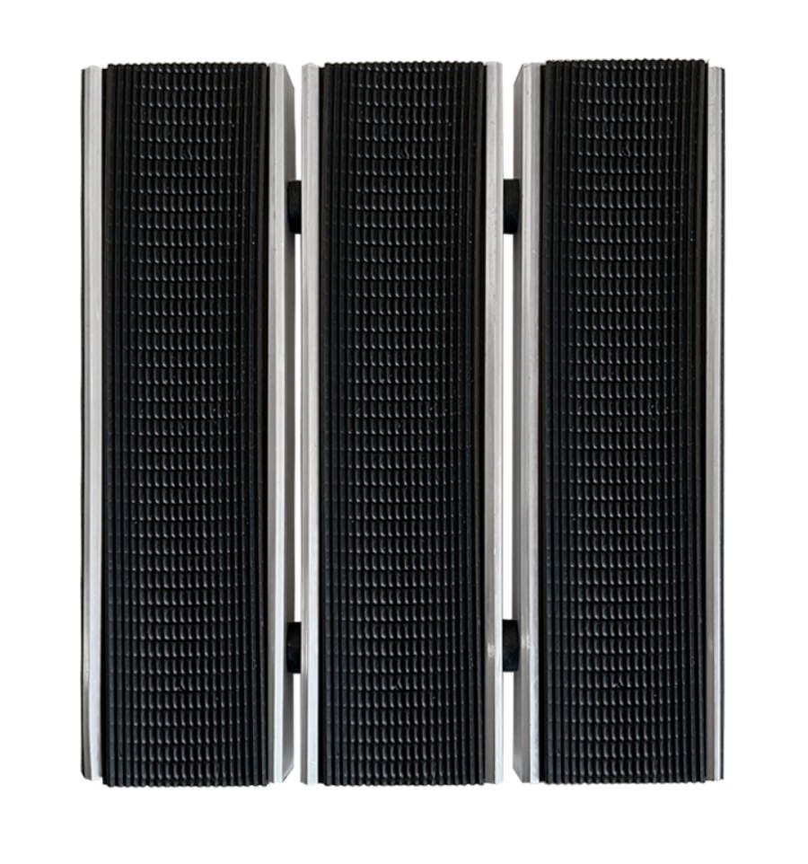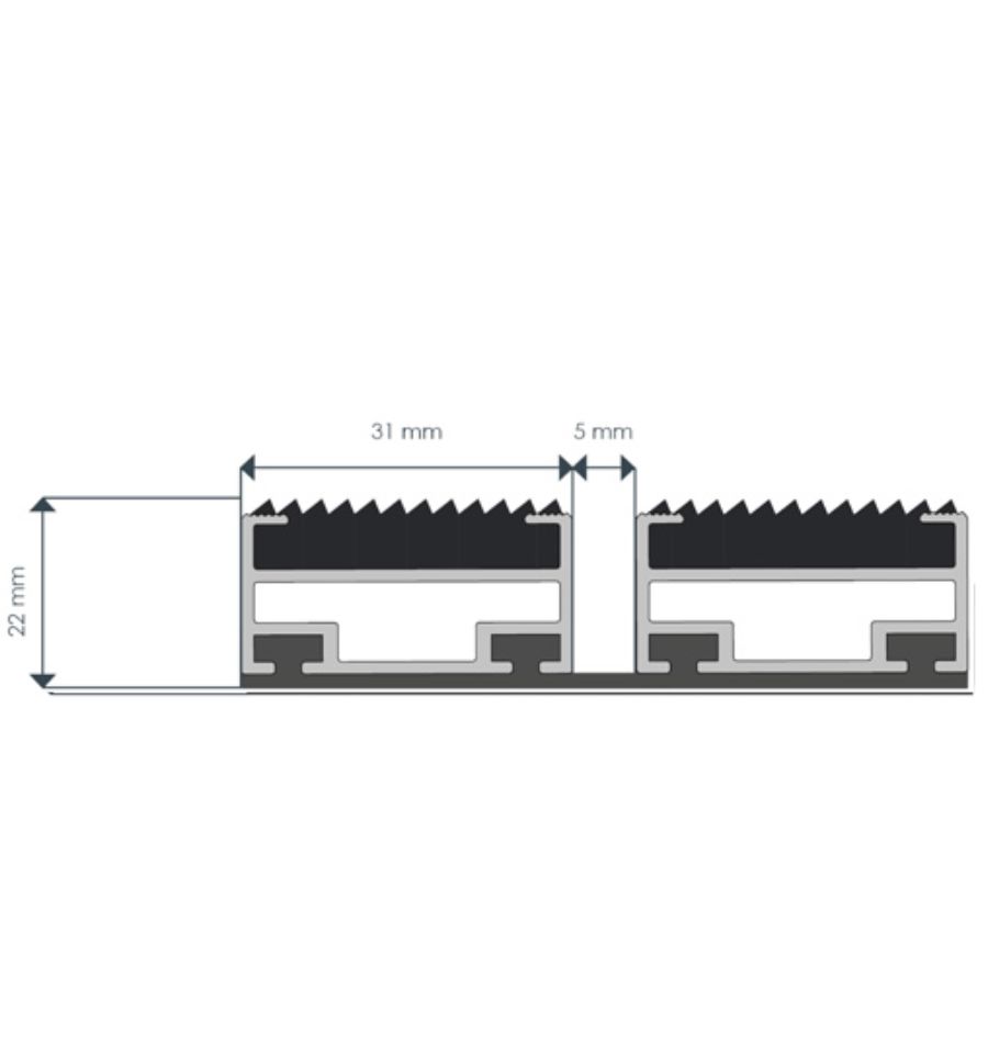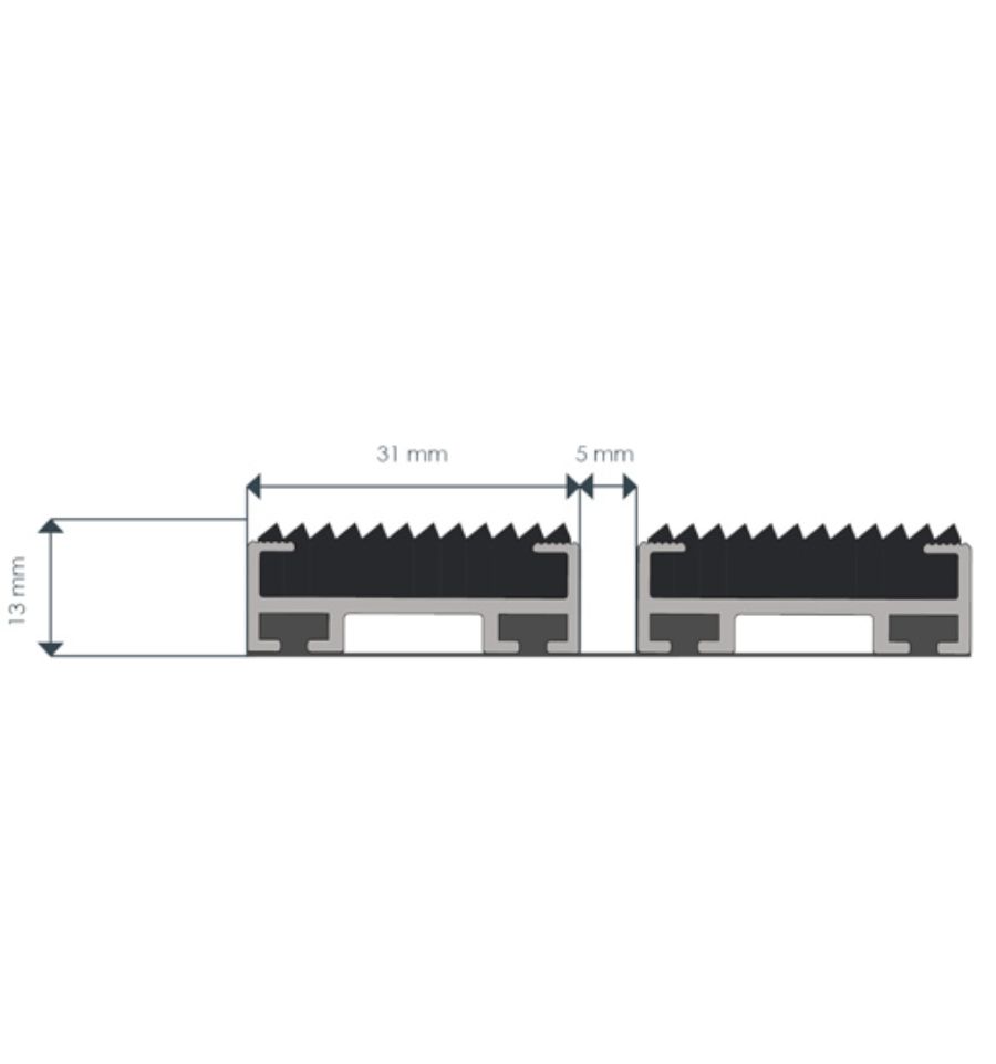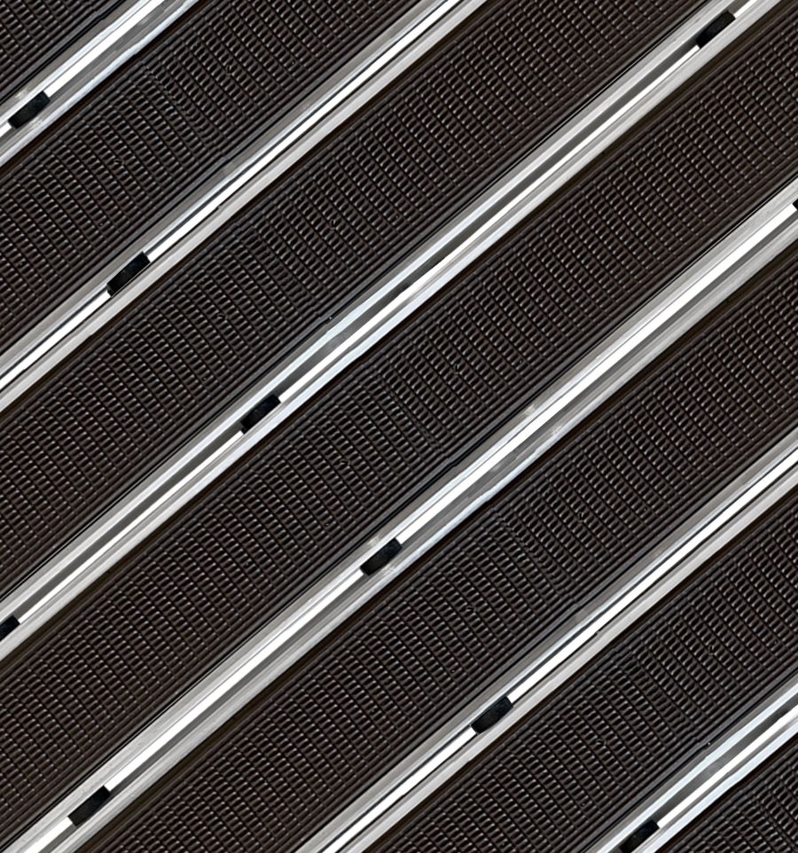 Le tapis est doté d'une sous-couche en caoutchouc permettant d'adhérer parfaitement au sol, évitant ainsi tout mouvement du tapis, une fois installé dans la fosse ou le cadre. Cette sous-couche permet aussi de relier les profilés entre eux en les tenant écarté de 5 mm.