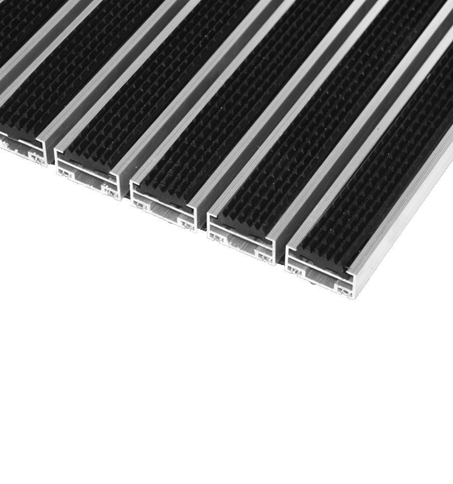Sa structure en aluminium et ses lames en gomme confèrent une fonction grattante et absorbante à ce tapis en caoutchouc. Cela en fait un choix idéal pour les établissements recevant un passage régulier à intense, comme les hôtels, les petits commerces, les cabinets médicaux ou encore les copropriétés.
