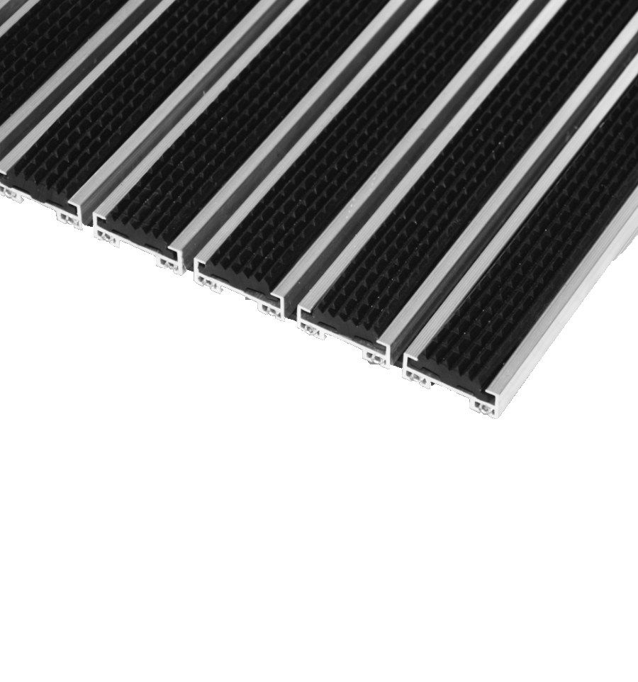Sa structure en aluminium et son insert en caoutchouc strié en font un produit ultra-résistant aux intempéries. Il sera donc aussi efficace contre la saleté en intérieur qu’en extérieur. Cela lui confère également une qualité antidérapante, idéal pour les lieux de passages moyen à intense.