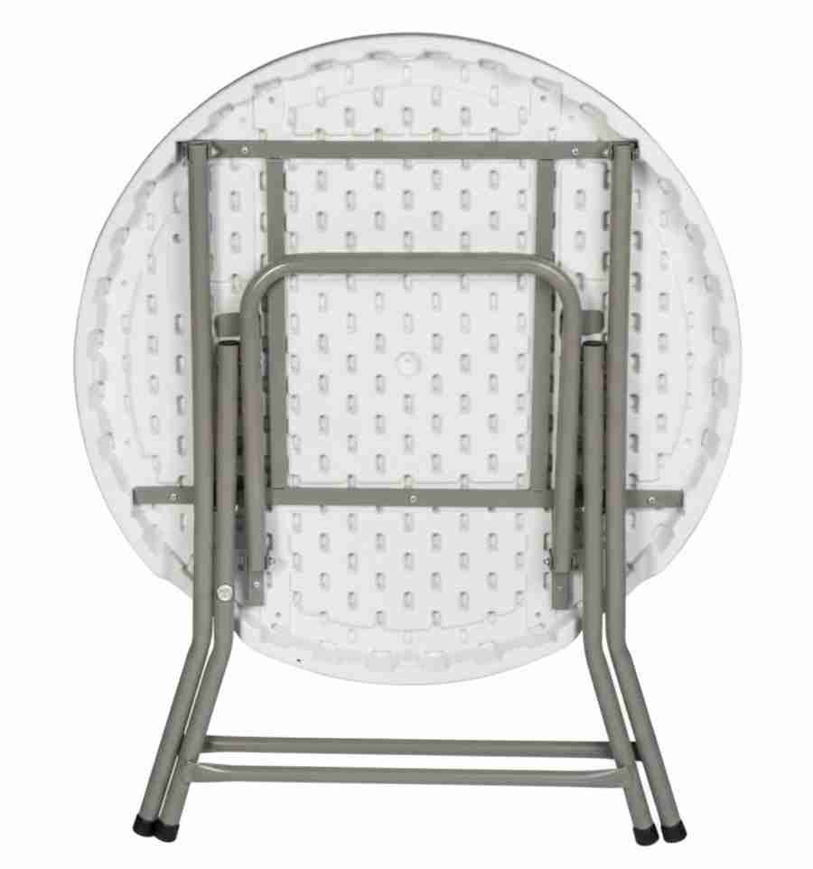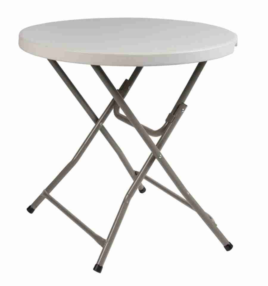 Le plateau de la table cocktail est en PEHD, de diamètre 80 cm et d'épaisseur 45 mm.