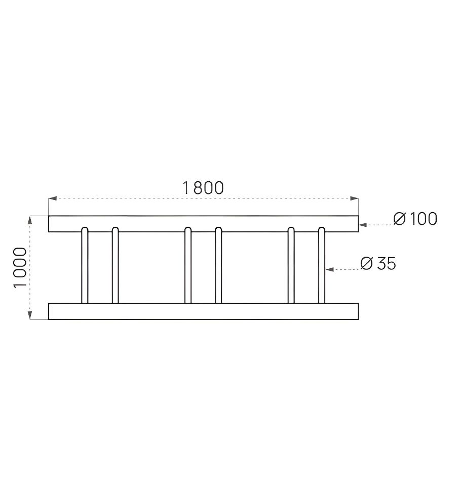 La longueur de ce rack à vélo est de 1800 mm et sa largeur, de 100 mm.