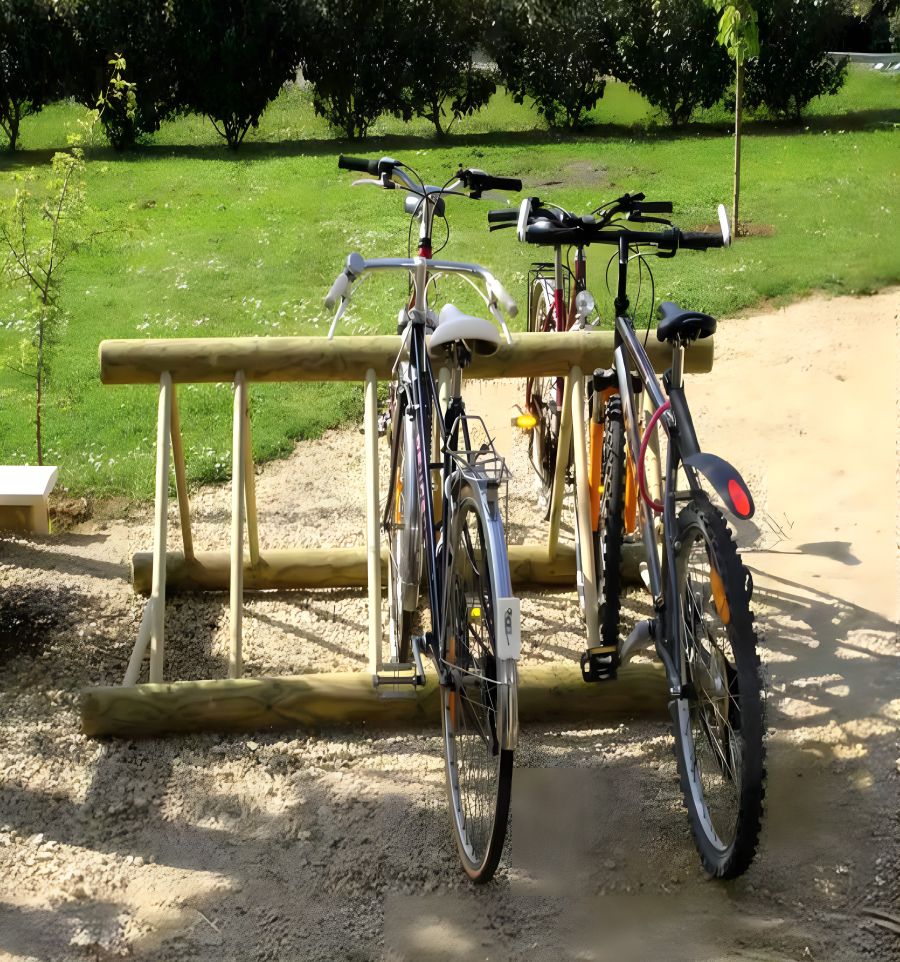 Le rack à vélo en bois brut est idéal pour le stationnement de vélos en extérieur.